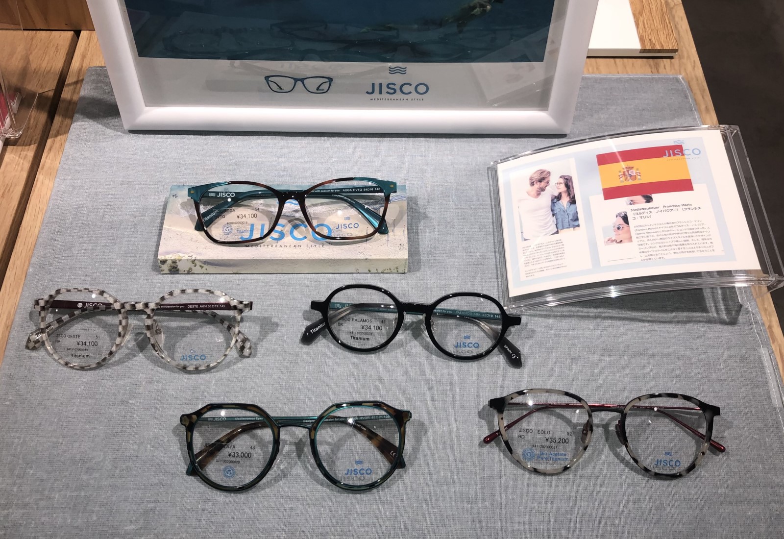 珍しいスペイン製のフレームです。地中海をイメージした素敵な色使いで、掛けてみると何故かしっくりくる。。。是非手にとって頂きたい一品になります。